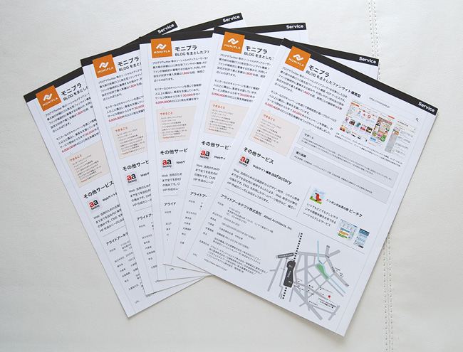 パンフレット印刷 モバイルサービスの案内パンフレット印刷 A4仕上げ2つ折りパンフレット(コート135kg) こちらはモバイルサービスの案内パンフレット。ホワ 続きを読む … 投稿者:dotprint 投稿日時:13年前